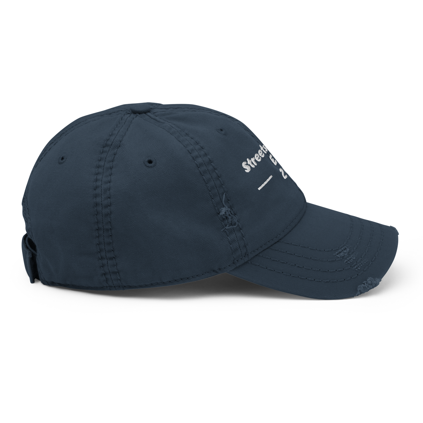 Expand your headwear collection with this fashionable dad hat. With a slightly distressed brim and crown fabric, it’ll add just the right amount of edge to your look. For a quick and easy outfit pair it with slacks, your favorite jeans, and a sports tee.